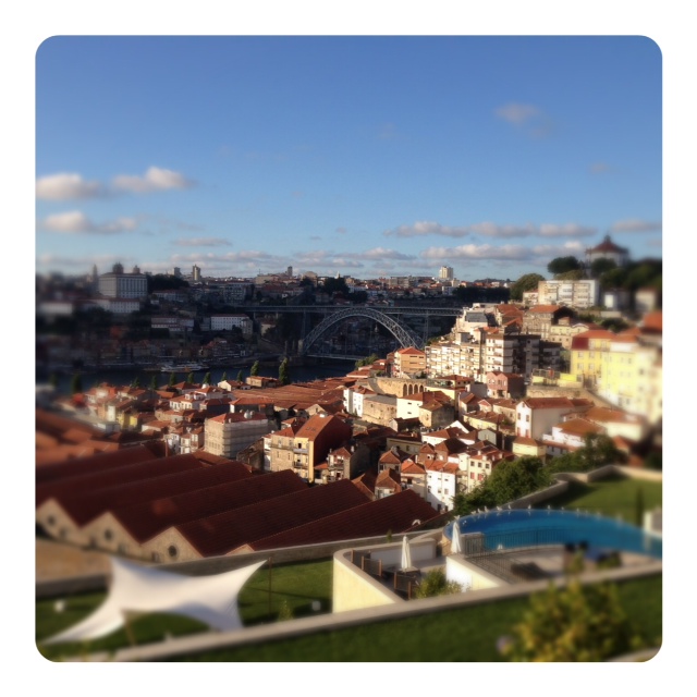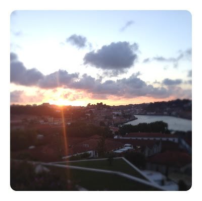 Lá fora fomos francamente arrebatados pela paisagem, o velho casario a estender-se até ao mar. Lindo!