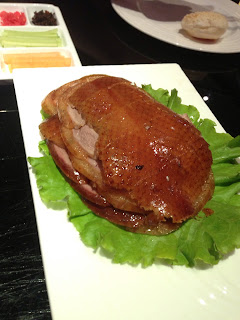 Numa das noites experimentámos o que é considerado o melhor restaurante de Pato à Pequim nos guias da cidade. O Da Dong é um restaurante elegante nitidamente acima das possibilidades dos habitantes locais. Pedimos, obviamente o pato. Entre risadas nervosas por não dominar minimamente o Inglês, o empregado que estava destinado à nossa mesa explicou a forma apropriada de saborear o pato. A pele deve ser acompanhada por uma camada de açúcar. Pode parecer estranho mas resulta muito bem. O restante temperado com molho de soja, alho e legumes finamente fatiados é colocado no interior dos crepes enrolados de forma especifica. É lógico que aldrabamos um pouco a preparação dos rolinhos porque nos falta a perícia e a prática.