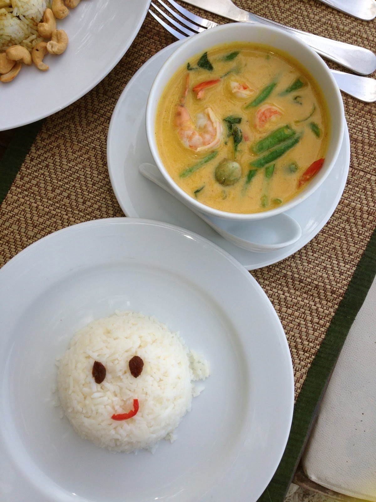 Aqui comemos divinalmente sem qualquer dificuldade. No primeiro almoço visitámos uma zona muito recatada da praia de Choeng Mon. Não há nada que saiba mais a férias do que almoçar com o pé na areia.