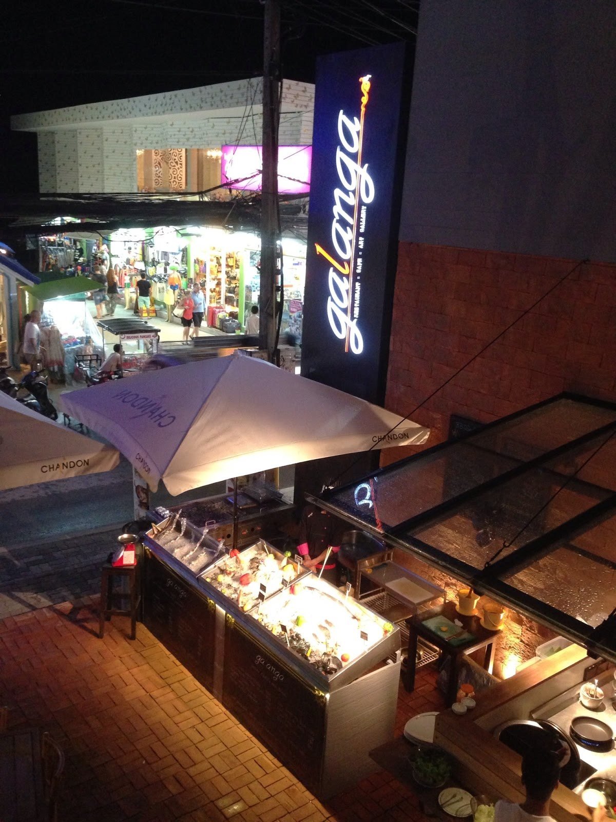 No último dia escolhemos um restaurante absolutamente incrível para jantar. O The Page fica em Chaweng Beach num hotel sobre a praia, o Library. O aspecto exterior é excelente mas… O problema é que há sempre um mas… Durante o jantar apercebemo-nos da abundante presença de baratas no chão em deck do restaurante sobre a areia. A certa altura uma delas estava já no guardanapo do Luís que saltou da cadeira com o susto. Explicámos o sucedido à empregada que se limitou a encolher os ombros e sorrir com o ar de quem está a tentar dizer “Yah, baratas.. é normal, não?“. Terminámos rapidamente a refeição no interior do restaurante e saímos. Escusado será dizer que o Luís foi a coçar-se até ao hotel… Não vos mostro fotografias dos pratos para não caírem na tentação de acharem que jantámos bem.