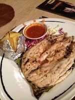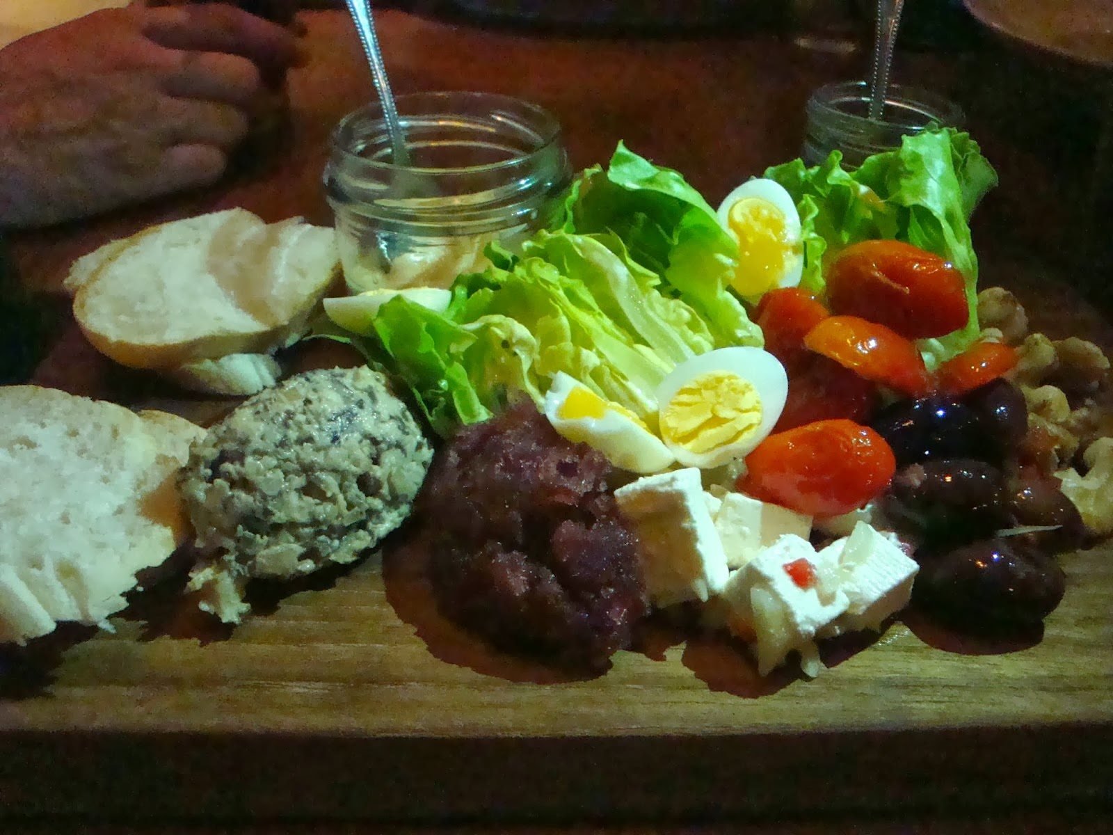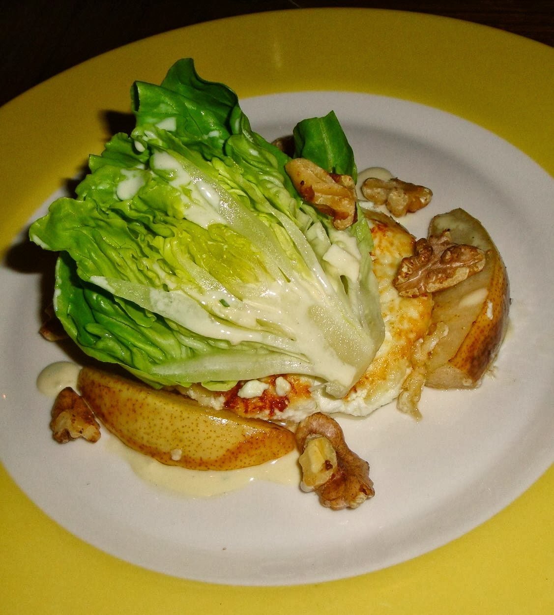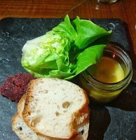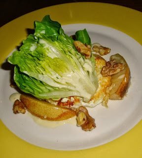 O empregado de mesa é um dos donos e foi extremamente simpático a esclarecer, no seu inglês com accent australiano, todas as dúvidas que tínhamos sobre o menu. Escolhemos para entrada paté de peito de pato e foie gras e queijo de cabra quente com nozes caramelizadas, pêra grelhada e salada de couve bebé. Soa fofinho, não acham?