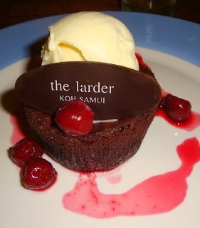 Ao jantar decidimos escolher um dos restaurantes recomendados nos guias que recolhemos no aeroporto e no hotel. O The Larder, perto de Chaweng beach, a zona mais animada da ilha, pertence a dois amigos Australianos que decidiram partir de malas e bagagens para Koh Samui e por ali ficaram. Que bela ideia… É nestas alturas que eu me pergunto o que é que ainda estou a fazer em Portugal.