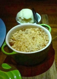 Crumblicious (crumble de maçã e ruibarbo, gel balsâmico e gelado de vagens de baunilha)