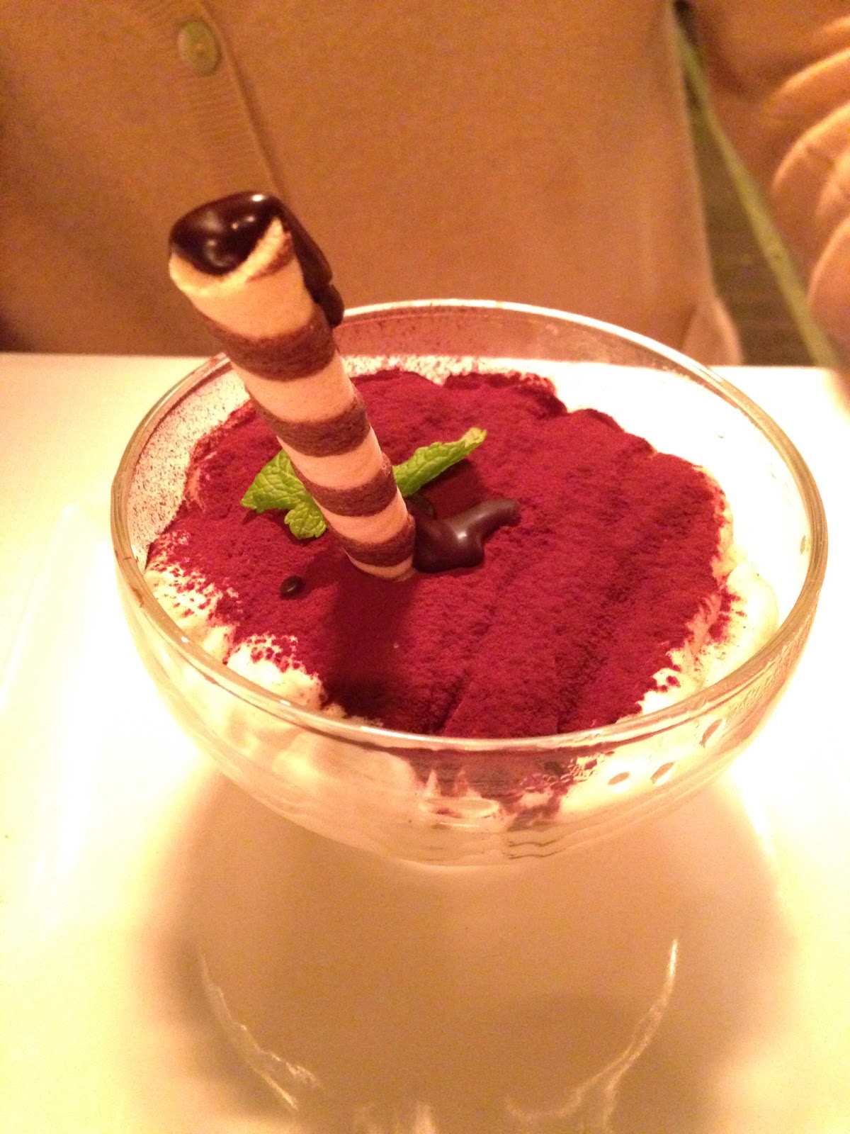 A Ana não consegue resistir ao tiramisu. Não consegue mesmo! E como é meu dever acompanhá-la em todos os momentos, bons ou maus, pedi um delicioso panna cotta com cobertura de chocolate para que o meu marido pudesse provar. Já vos falei de aversão de estimação que ele tem pelos frutos vermelhos… Se fossem azuis ele comia, nem que lhe provocassem a maior urticária da história.
