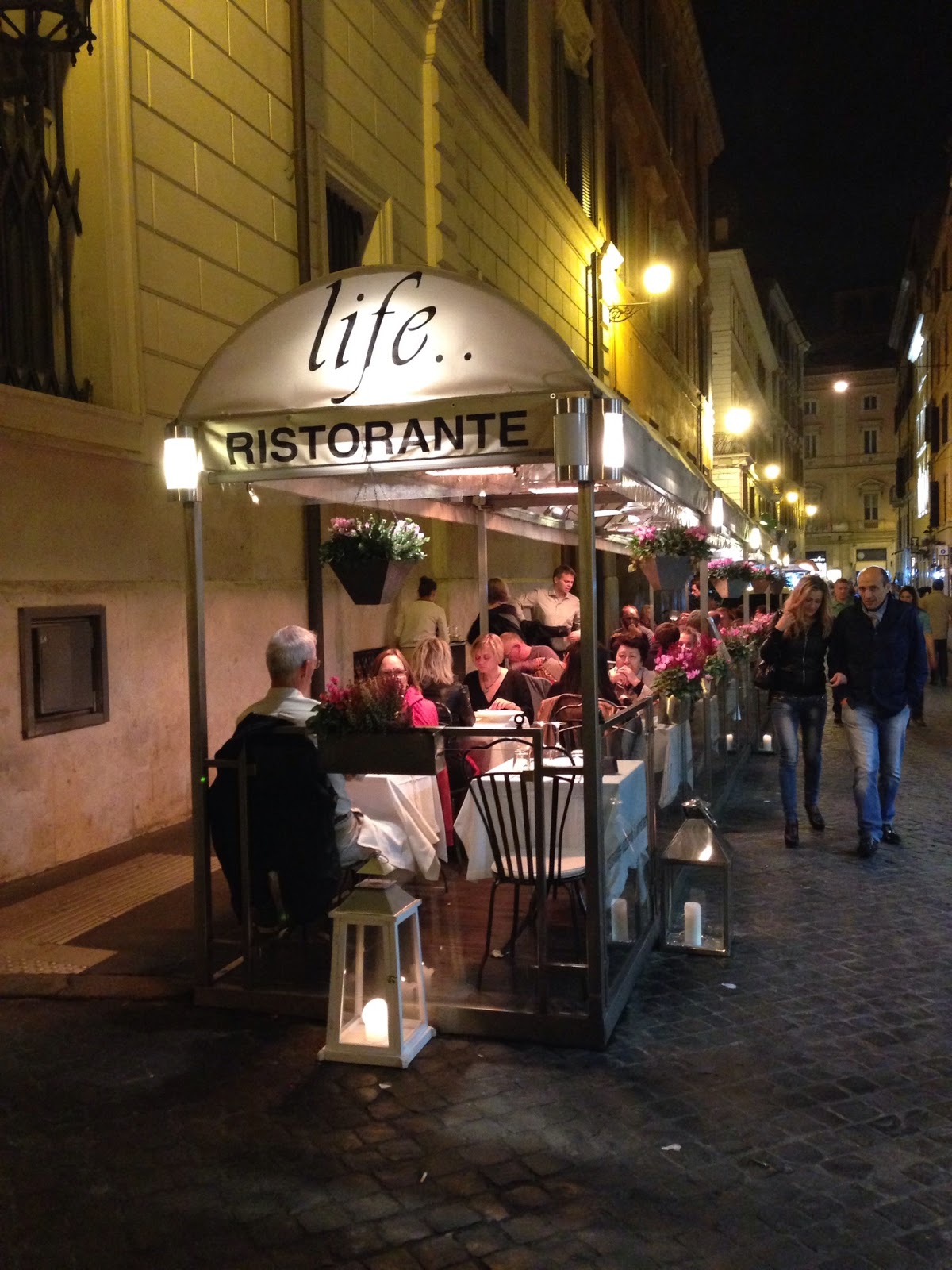 Voltámos ao local onde quatro anos antes tinhamos saboreado verdadeiras delícias da culinária Italiana. O Life fica situado na Via della Vite muito próximo da Piazza di Spagna, local onde outrora desfilavam as criações das melhores casas de alta costura do Mundo. Trata-se de um restaurante cosmopolita que oferece um menu vasto de pratos tipicamente italianos.