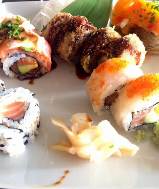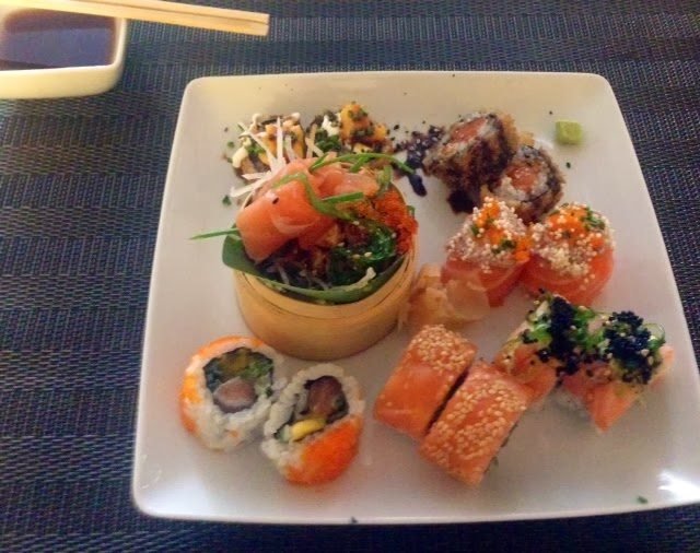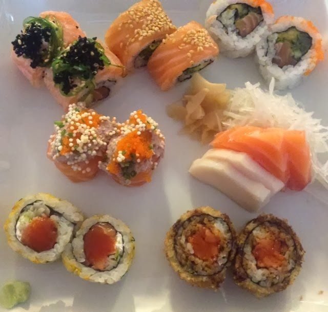 Os pratos vieram ter à mesa com um aspecto divinal… fiquei agradavelmente surpreendida com a qualidade dos ingredientes e com a rapidez do serviço, especialmente por se tratar de um menu de almoço, situação em que habitualmente noutros locais o sushi deixa um pouco a desejar. Lamento não ter fotografias dos temaki, mas as meninas devoraram-nos em dois tempos.