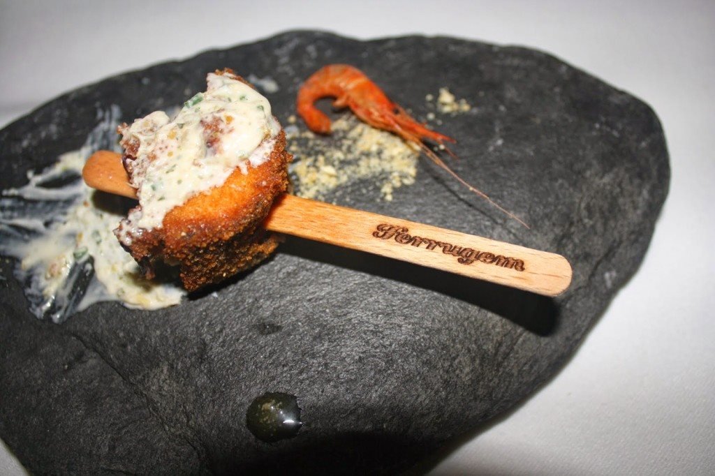 Adoro a tendência actual do regresso às origens culinárias da cozinha Portuguesa, de utilizar os produtos tipicamente tradicionais e muito nossos nas iguarias dos mais conceituados restaurantes. É por esse motivo que aprecio o Tasca da Esquina, o São Gião… e também o The Yeatman e o DOP embora num outro registo, if you know what I mean… O Ferrugem não é diferente. Basta referir que tem como “especialidades da casa” o famoso Pastel de (Bacalhau com) Nata® e a deliciosa Manteiga de Azeite® cuja apresentação é autenticamente idêntica a uma pastinha de dentes. Produtos tradicionais com aquele twist. Adoro!
