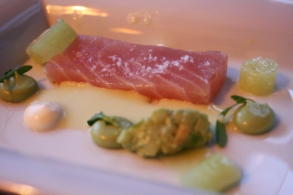 Lírio dos Açores marinado, pepino, tártaro de maçã e abacate