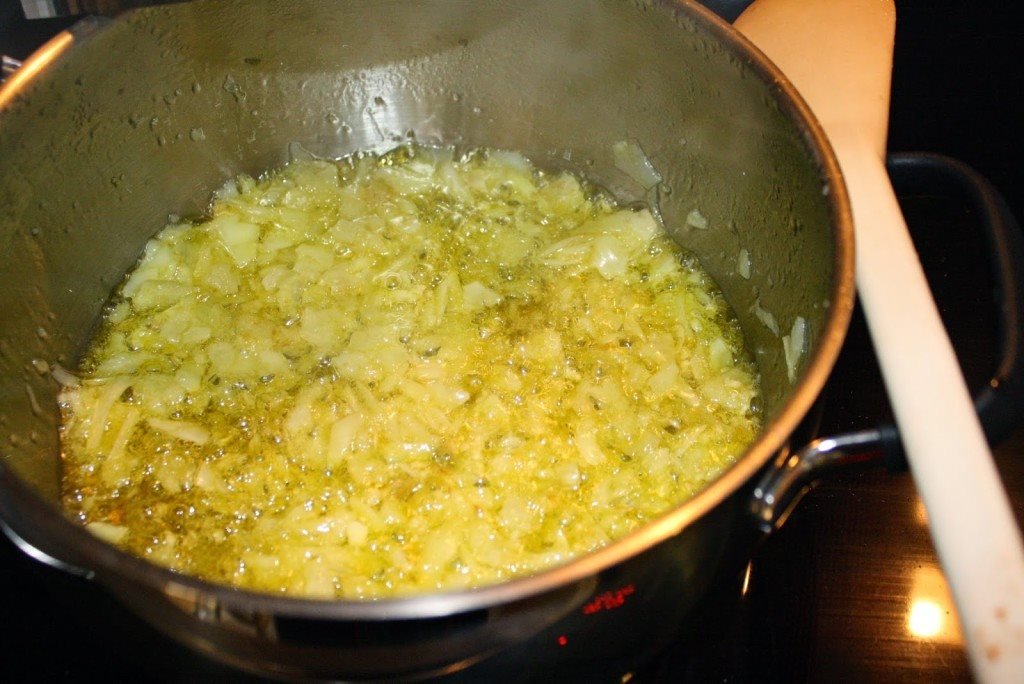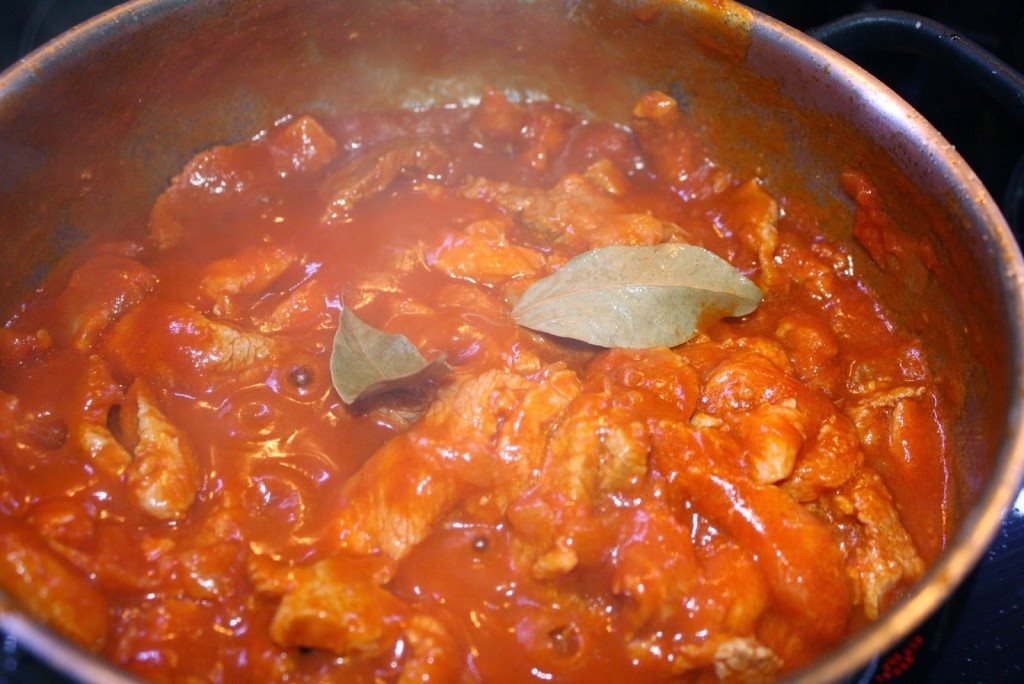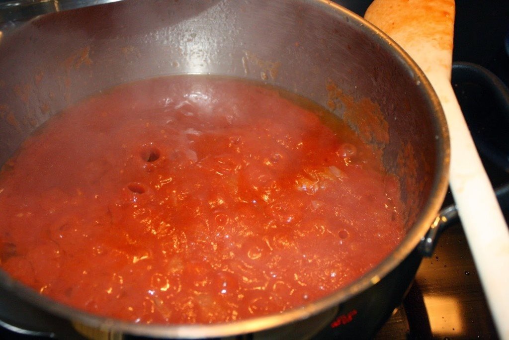 Refoga a cebola e os dentes de alho em azeite. Adiciona a polpa de tomate, a massa de pimentão, a mostarda dijon, o limão, as folhas de louro, o tabasco e o sal e deixa reduzir para apurar os sabores.