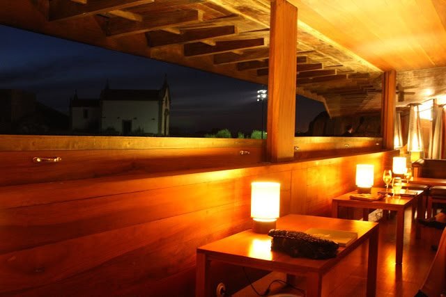 Encaminharam-nos à sala de jantar e felizmente pudemos escolher uma mesa na varanda mesmo em cima das rochas, bem mais convidativa do que a sala de jantar. Um local impressionante e único. Pena que o conforto das cadeiras não fosse adequado ao prestigio que o espaço pretende ter.
